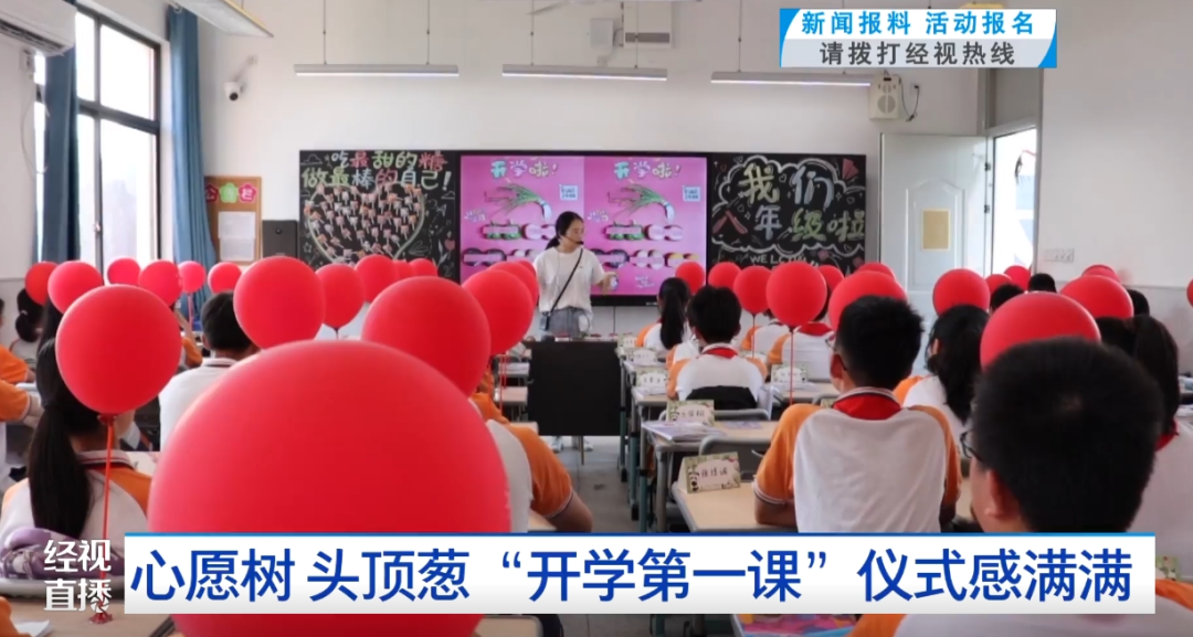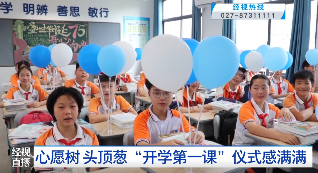 在浙江湖州,当地学校开展“开学第一课”,准备了心愿树、头顶葱等特色活动,用隆重的仪式感,为学生开启新征程。