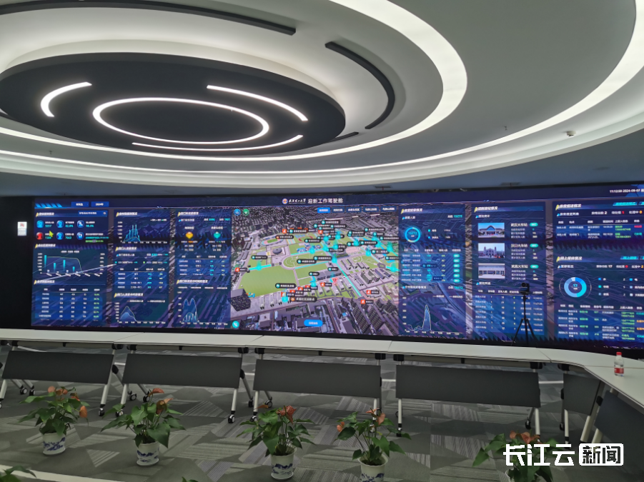 当天上午,武汉理工大学党委书记信思金、校长杨宗凯通过驾驶舱查看学校各校门、宿舍实时报到,校内重要点位实景展示,校园交通等情况。