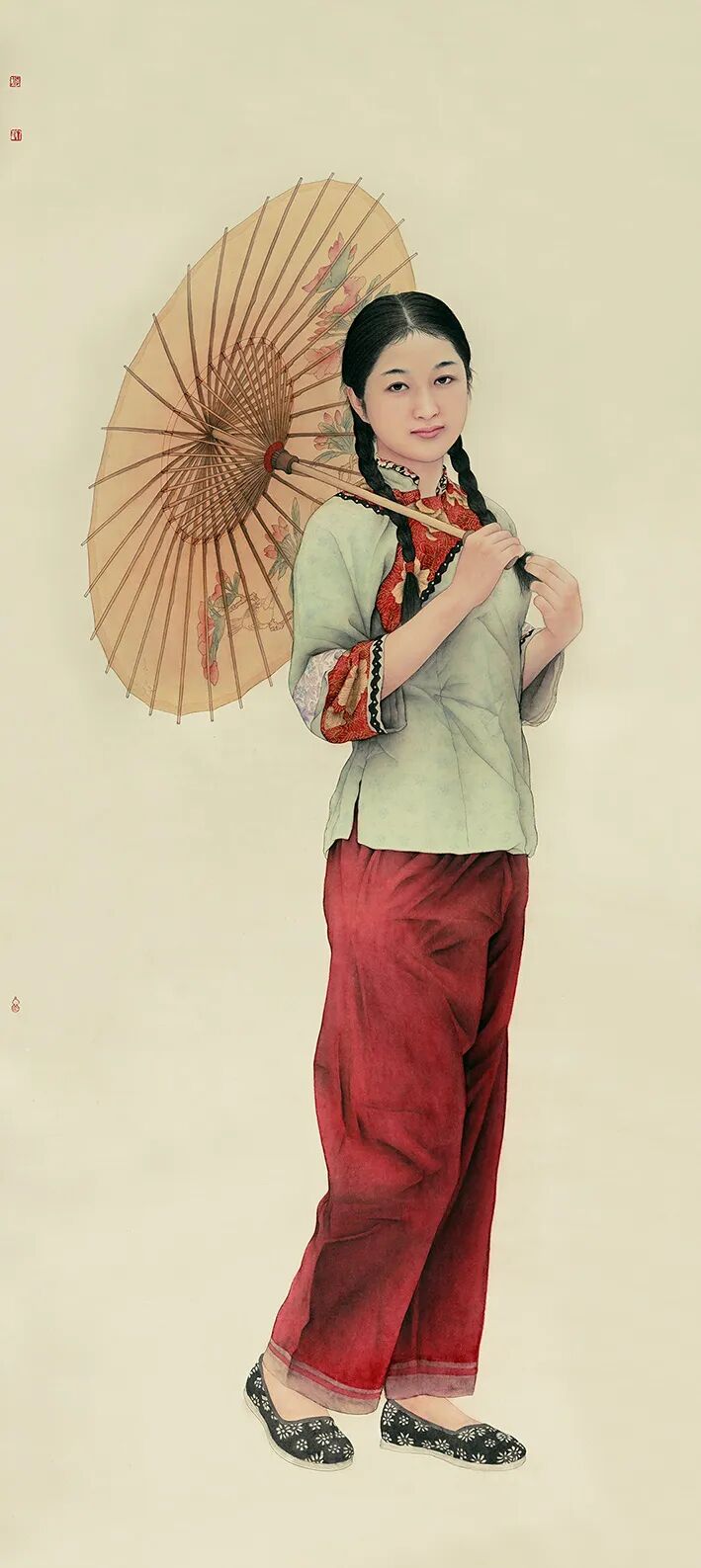 本次展览展出的作品有湖北省美术家协会主席李乃蔚创作的《撑花》。“我这幅作品通过一个细腻婉约唯美的小女孩形象,表达长江的那种清秀。题目叫《撑花》,在四川的方言是伞的意思,隐喻我们长江的生态保护。”李乃蔚说。