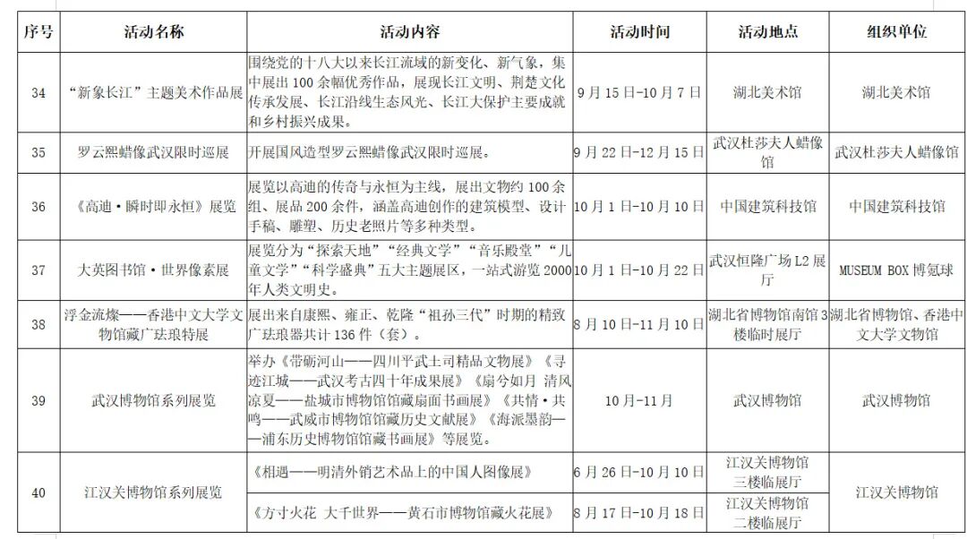 以长江主题灯光秀、景区游园、文博展览为主打,共31项活动。