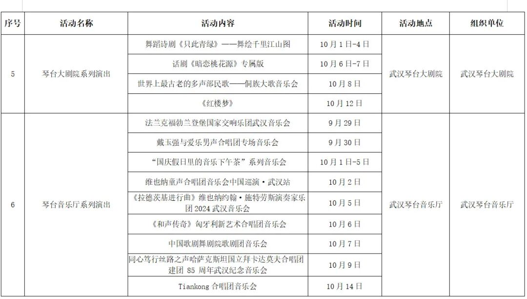 以各类音乐节、演唱会和文化演出等为主打,共16项活动。