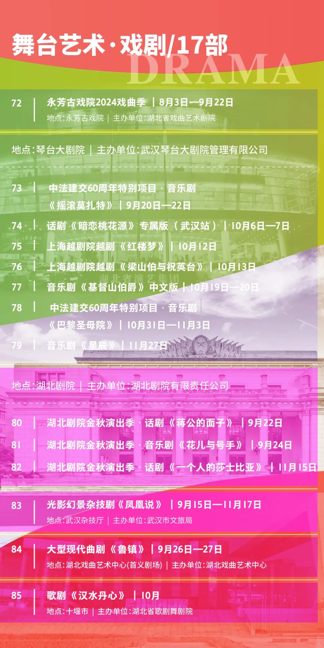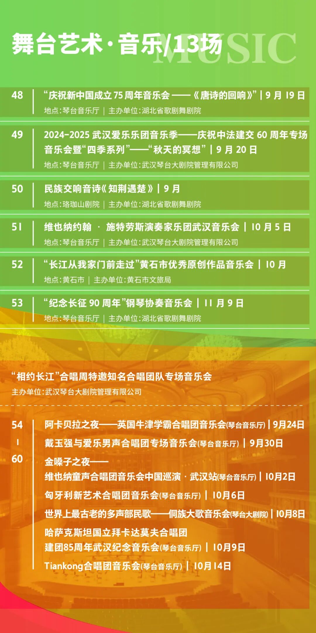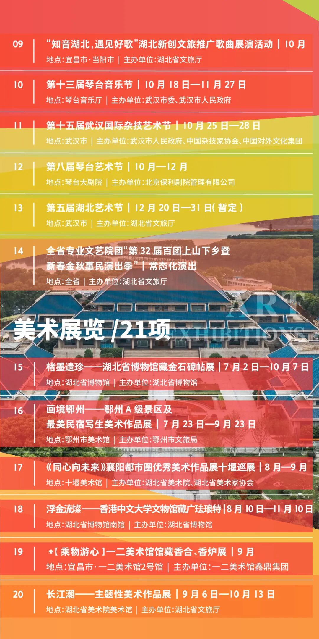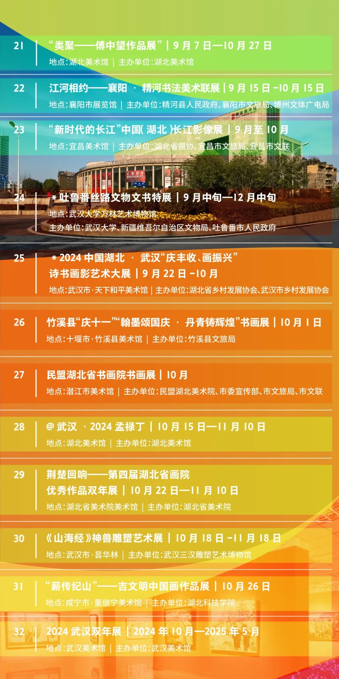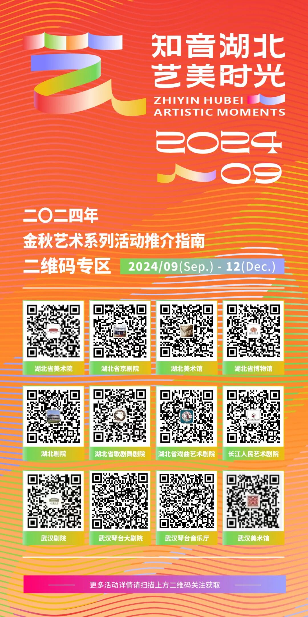 “知音湖北 艺美时光”2024年金秋艺术系列活动,如同一幅绚丽多彩的画卷,正缓缓展开,诚邀您收藏下这一份推介指南,让我们相约荆楚、相约金秋,共同遇见湖北文化艺术的魅力与感动。