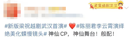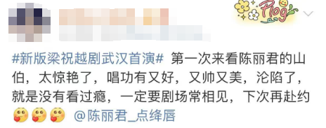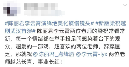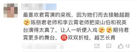 不仅如此,许多网友表示,因为陈丽君、李云霄演绎的“梁祝”,而去接触越剧,甚至爱上越剧。这些人在青年演员的带领下,能更多地去感受中国戏曲的魅力。