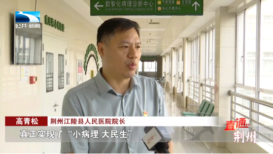 荆州江陵县人民医院院长 高青松:“现在病理信息云端共享,省级专家远程会诊,节省了往返外地的交通和住宿费用,减少了等待时间,让百姓在家门口便可以享受及时精准的医疗服务,真正实现了‘小病理、大民生’。”