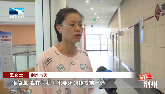 荆州市民 王女士:“很简单,我在手机上把要还的钱提前一还,打一个结清证明,在公积金窗口一交就可以了。去年,同事说还要填表、盖章、再解押,今天我来一分钟不到就把手续办完了。”