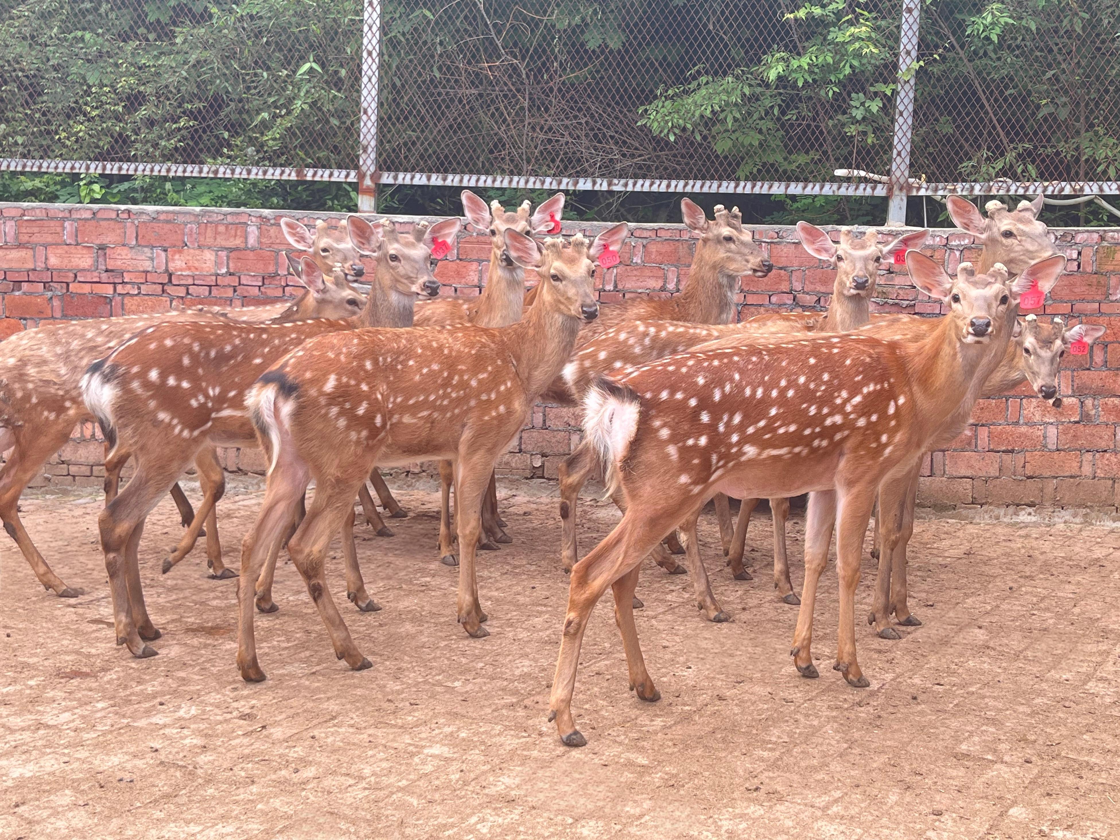2020年,一直在外从事灯具行业工作的明平杰回到军山村,建鹿舍、买种鹿、学养殖,开始了梅花鹿养殖之路。目前养殖基地中共有42头鹿,每年通过卖鹿茸切片、鹿血酒、鹿茸酒等产品,年产值可达五十余万元。