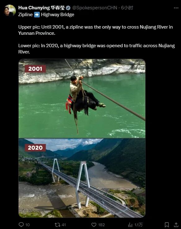 10月1日,中华人民共和国迎来75周年华诞。当天,中国外交部副部长、新闻司司长华春莹在社交媒体X平台发布18组对比图,生动展示了过去75年间,中华大地如何沧海巨变。其中,有3张条都提到了湖北。