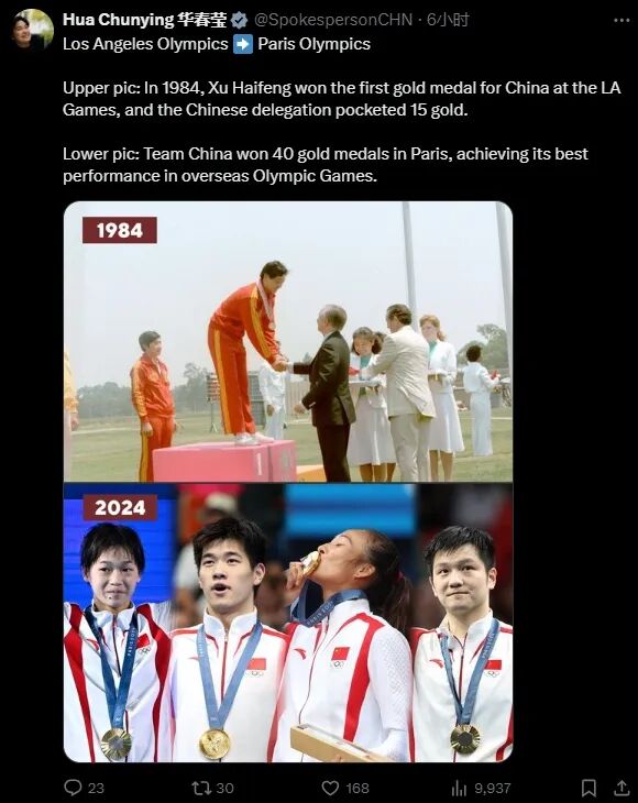 1984年,许海峰在洛杉矶奥运会上为中国夺得奥运首金,中国代表团斩获15金。