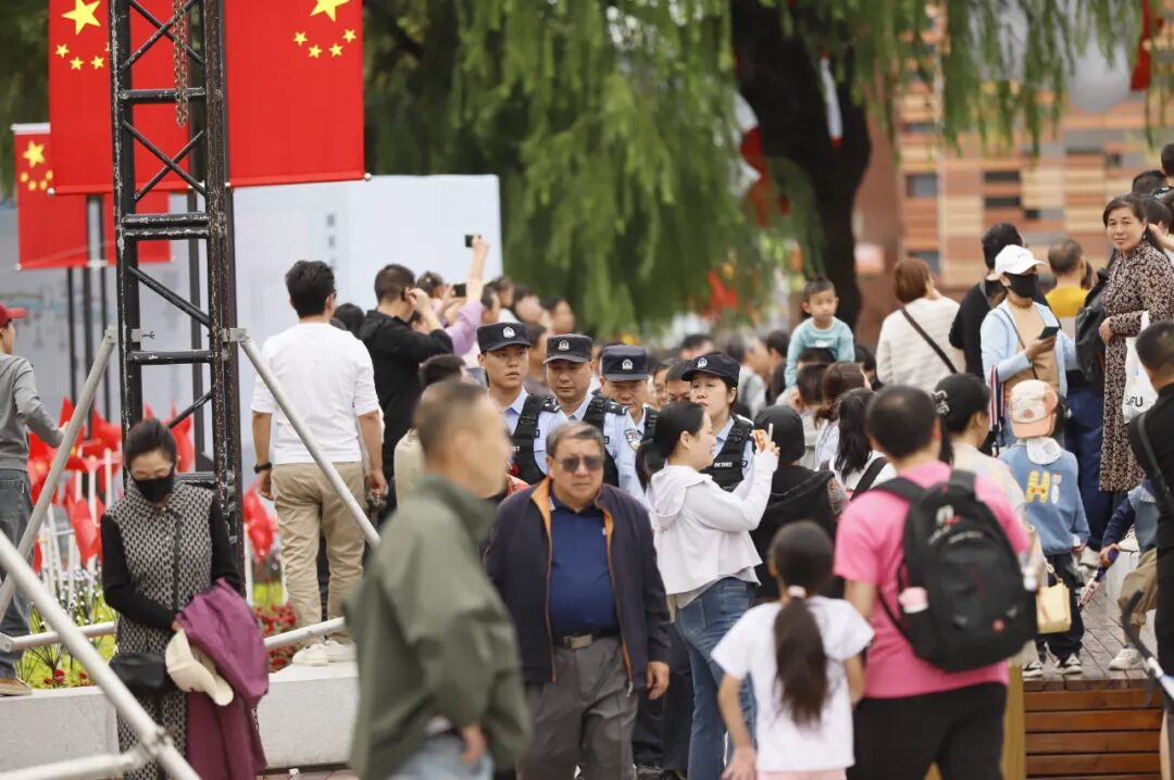 人潮人海中,有你有我……10月1日,在襄阳新晋网红打卡点——“襄水街”,襄城区公安分局檀溪派出所民警正在巡逻执勤。