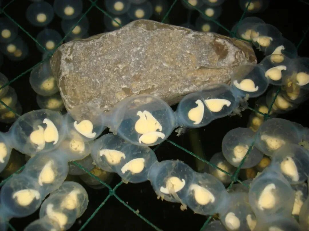 这是处于尾芽期的娃娃鱼受精卵(摄于2006年8月12日, 张家界市金鲵生物工程股份有限公司供图)。