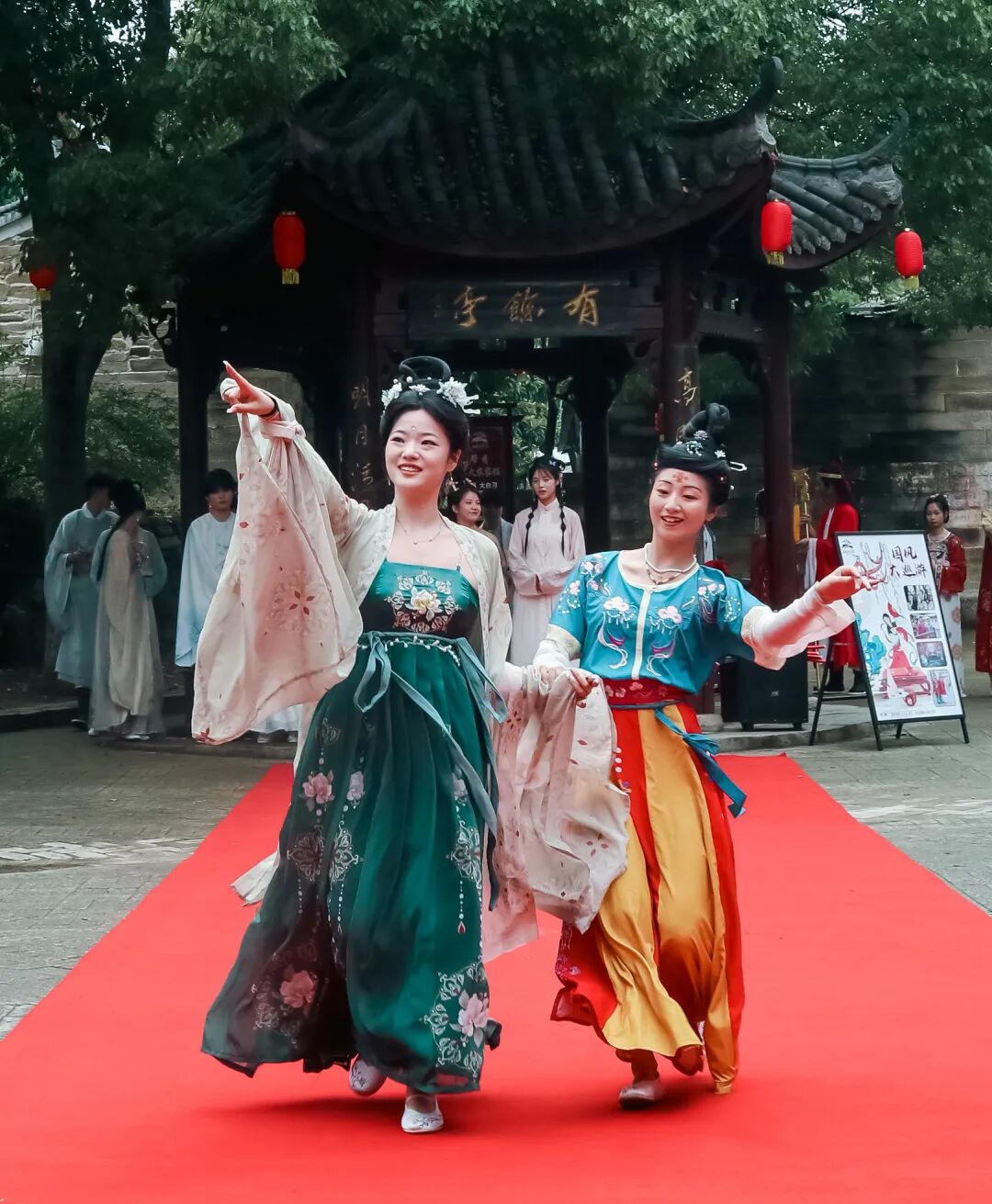 亭台楼阁是在唐城出片不可错过的打卡点,白栏玉阶、雕梁画栋……行走过的每一处地方都是绝佳的背景板。穿上汉服,穿梭其间,体验真正的国风之美。