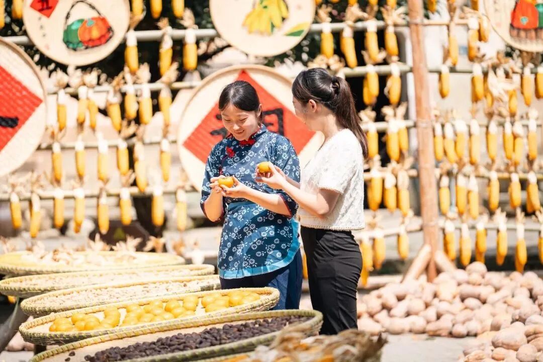 秋风轻拂,金菊绽放,在这个被金色阳光温柔拥抱的季节里,来大余湾古村落打卡,金黄色的玉米、红彤彤的辣椒、橙黄色的南瓜等各种农作物,在有序精心的布置下,成了一幅幅美丽的秋日画卷。