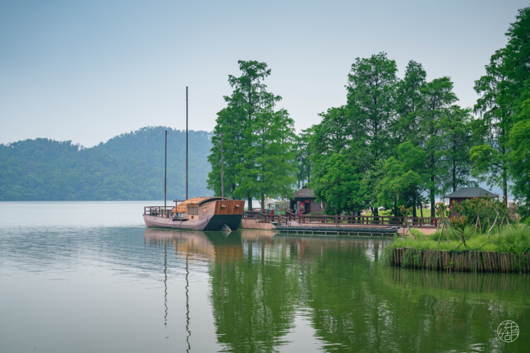 行至中央,放眼望去,竹筏浮在湖上,岸边恍若江南。乘坐竹筏打卡拍照,特别适合新中式和古风装扮,让你的照片充满江南韵味。
