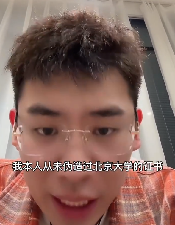 他表示,学历信息是账号注册之初填写的,自己从未伪造北京大学的证书,也没有在直播以及任何地方使用北京大学的标签。