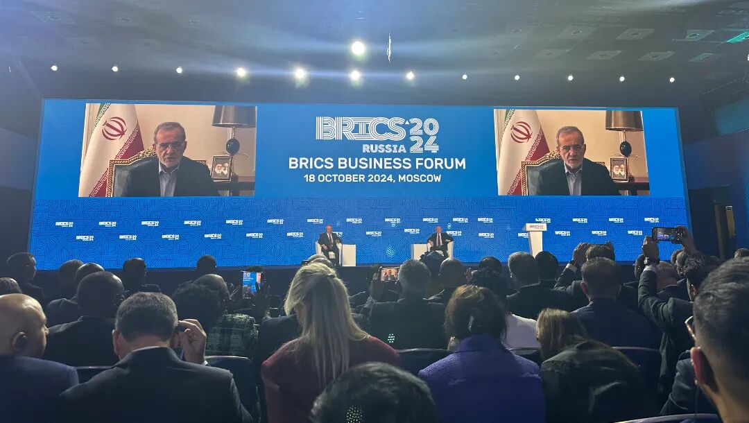 当地时间10月18日,2024年金砖国家工商论坛在俄罗斯莫斯科举行,论坛主题为“金砖国家伙伴关系:加强多边主义,促进全球公平发展与安全”,来自金砖国家工商界的约800名代表出席。论坛涵盖金融投资合作、国际贸易与物流连接、农业发展和粮食安全等议题。俄罗斯总统普京出席并致辞,埃塞俄比亚、南非、伊朗总统发表视频致辞。