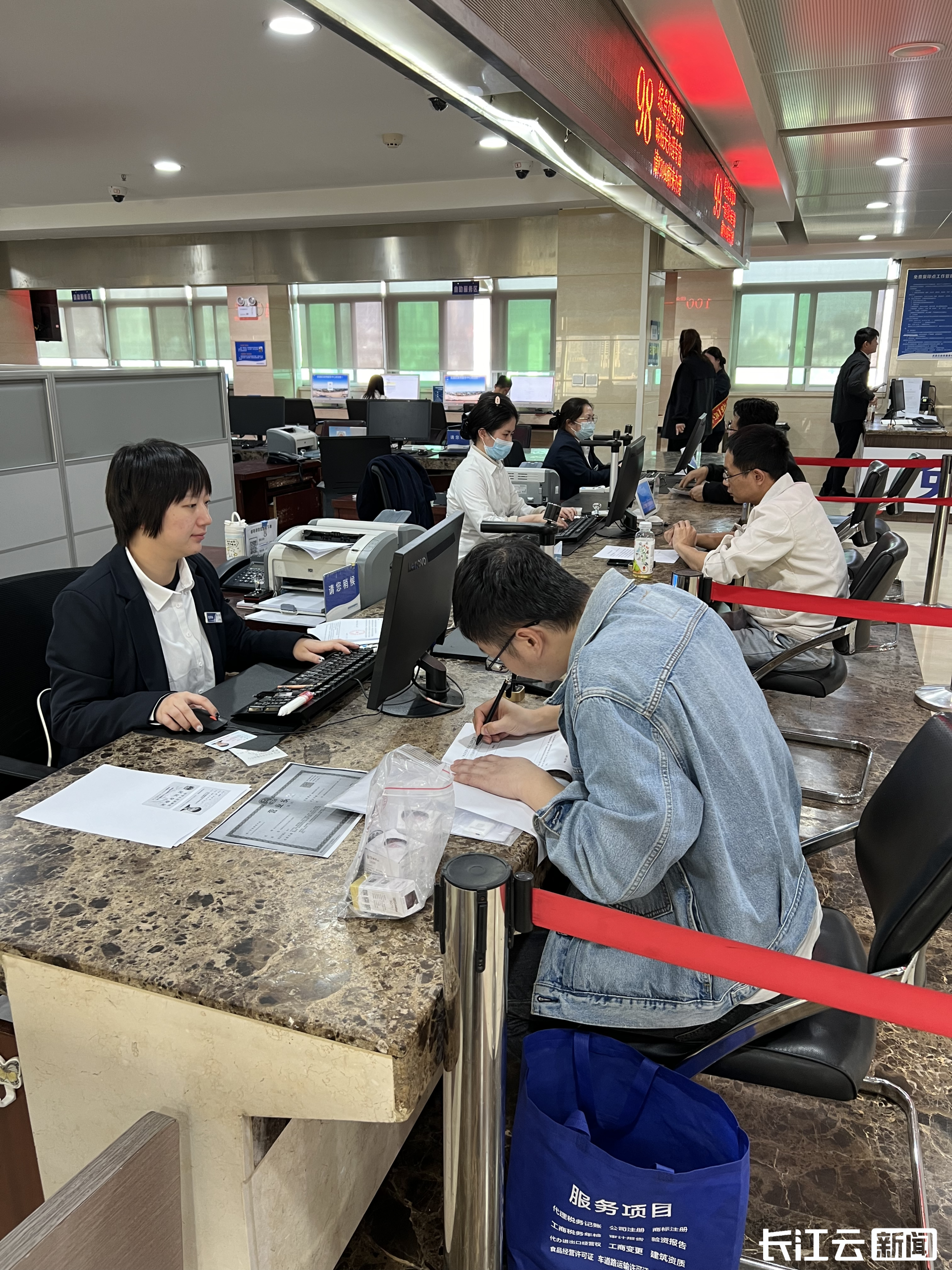 据悉,胡先生到武汉市武昌区政务服务大厅办理营业执照注销,窗口工作人员通过后台查询到该公司之前办理了食品经营许可证,便主动询问胡先生是否要同时进行食品经营许可证的注销,在得到胡先生肯定答复后,工作人员指导胡先生迅速填写申请材料,仅20分钟,胡先生就领取营业执照和食品经营许可证注销通知书。