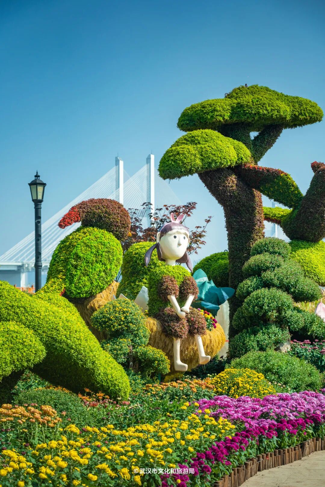 各个参展单位的造景也是汉口江滩的一大特色。机关、企业、学校等结合自身特点呈现出别具一格的景观,有桥梁、有湿地、有帐篷,还有各种可可爱爱的小动物造型。