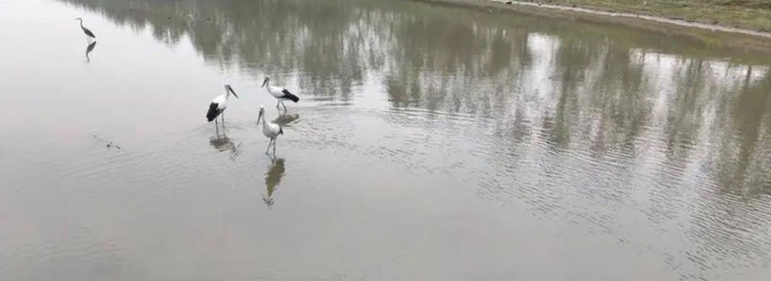 今年10月,湿地公园发现数只东方白鹳优雅地戏水觅食,不时引颈高歌,十分引人注目。