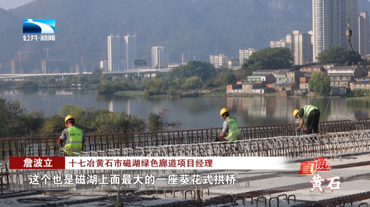 十七冶黄石市磁湖绿色廊道项目经理 詹波立:“建成之后,可能是咱们黄石市新的一个网红打卡点,这个也是磁湖上面最大的一座葵花式拱桥。它那个造型就比较独特,建成之后,从那个西塞山区到团城山也就十分钟。”