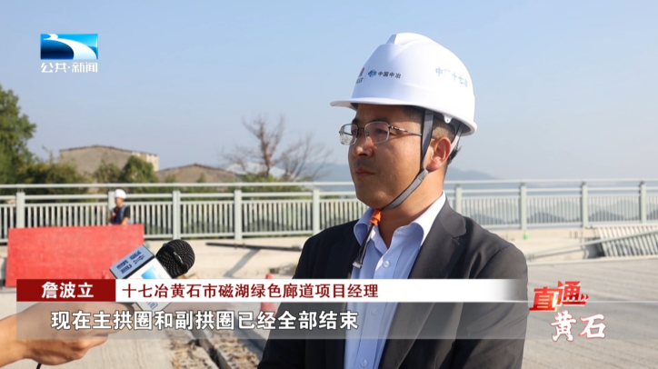 十七冶黄石市磁湖绿色廊道项目经理 詹波立:“现在主拱圈和副拱圈已经全部结束,我们的梁板吊装已经完成了75%。我们计划是在11月30号全部结束,12月28号这样达到一个通车条件。”