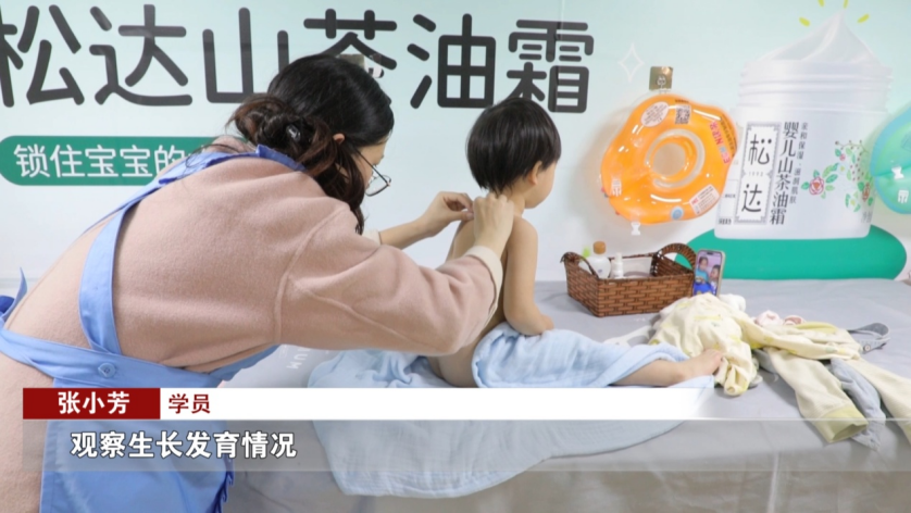 为了更好地熟悉育婴技能,每天下课,张小芳就到一家训练中心推荐的母婴店进行实习。一到母婴店,她就忙着给宝宝换尿布、洗澡、按摩。