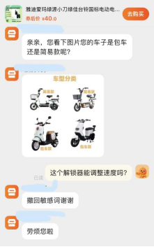 长江云新闻记者在某购物平台搜索“电动自行车报警器”,网页弹出数十个选择,多数价格在30-50元之间。点击其中一家,首页显示销售“国标车解锁报警器”。记者咨询客服这款“解锁报警器”是否可以“解速”,客服表示直接拍,包教包会。