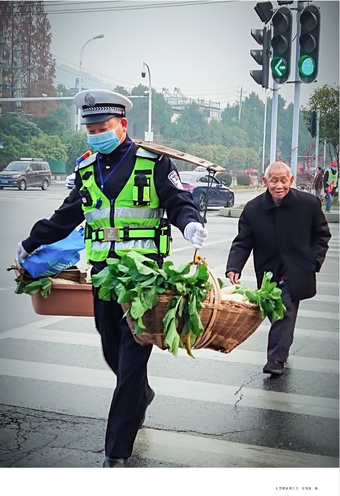 执勤交警一根扁担帮老人挑菜过斑马线,一个微小善举温暖了一座城,冲上热搜;