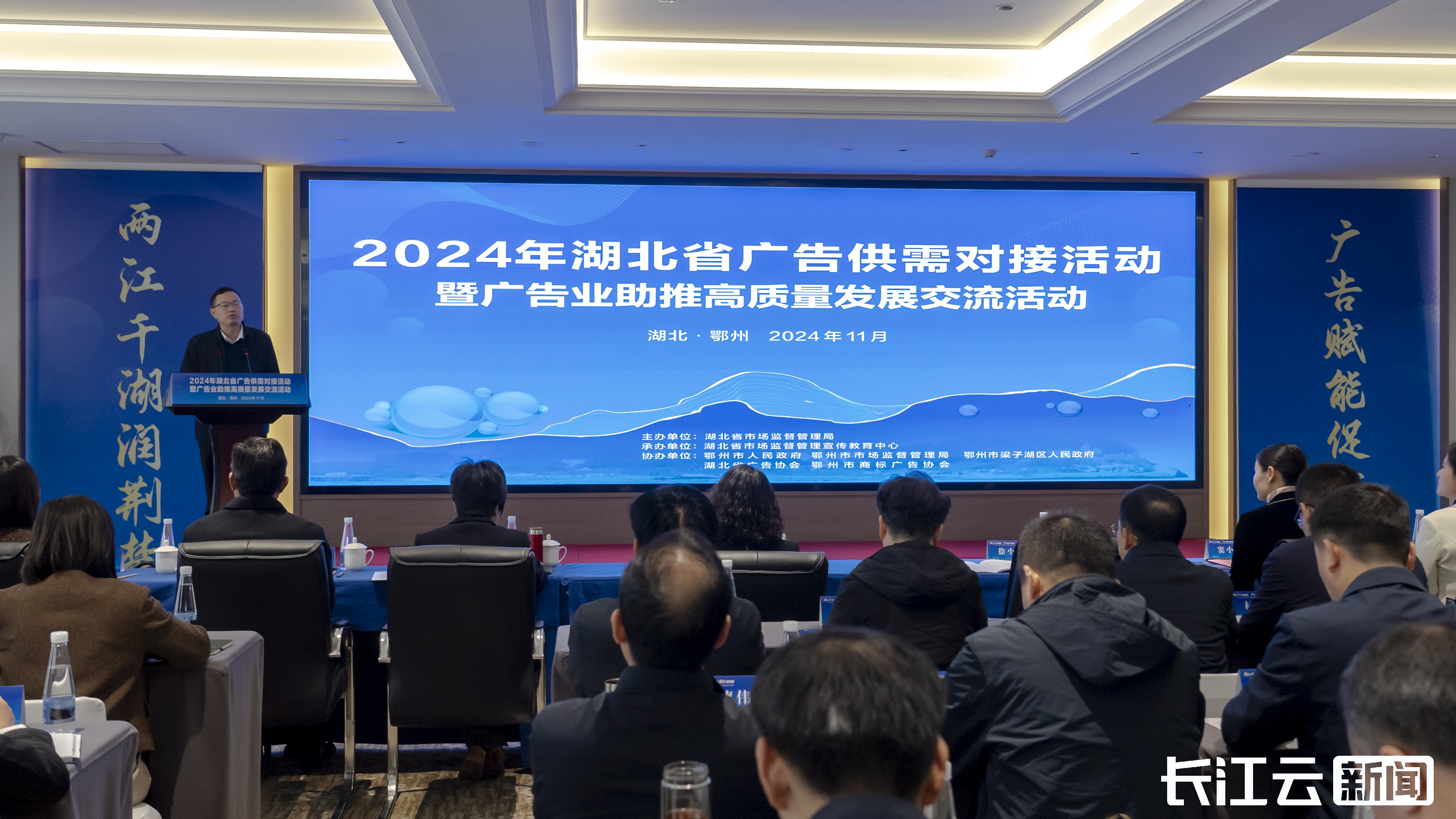 近日,2024年湖北省广告供需对接暨广告业助推高质量发展交流活动在鄂州顺利举办,活动以“两江千湖润荆楚 广告赋能促发展”为主题,以广告业助力江河湖库等水经济业态发展为切入点,组织开展供需对接和现场交流活动。来自省委宣传部、省发改委、省知识产权局、省市场监管局,省广告协会,鄂州市人民政府、梁子湖区人民政府,全省17个市州市场监管部门、广告协会、广告企业、品牌企业的相关负责同志和代表,以及高校专家、新闻媒体记者等近200人参加活动。
