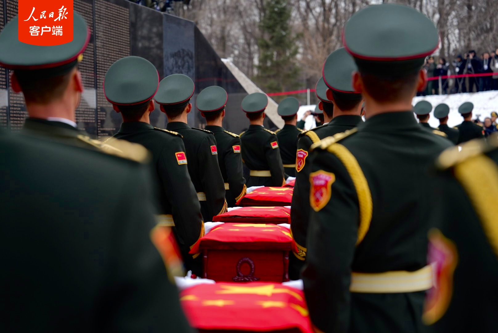 现场礼兵鸣枪12响,向志愿军烈士致敬,这也是鸣枪礼的最高礼节。 魂兮归来,英雄安息!