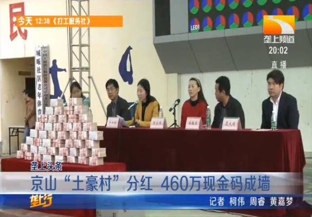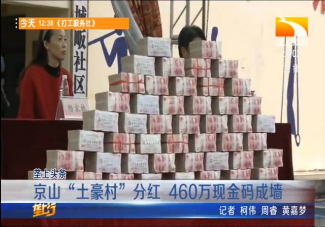 前不久,在京山县城畈村,460多万元的现金,被银行的工作人员整齐的摆放在桌子上,一捆捆的百元大钞摞起来足有一人多高,这些百元大钞,全部发给了现场的1800多名城畈村的村民。