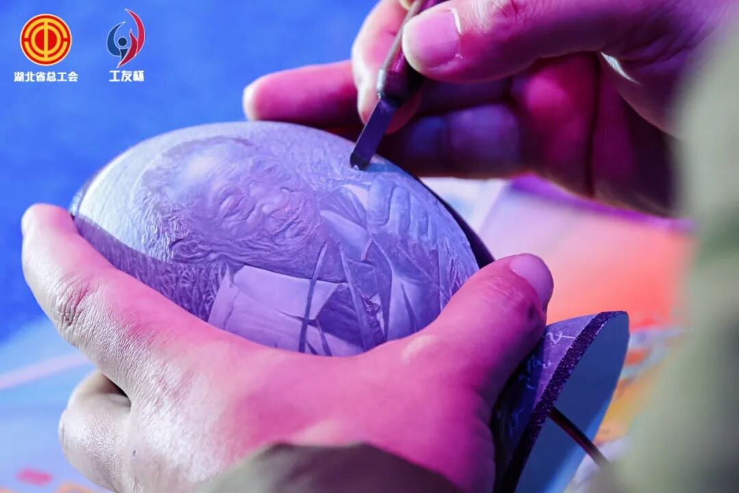 以刀代笔,由表及里,在蛋壳表面完美雕刻出惟妙惟肖的写实人物肖像。