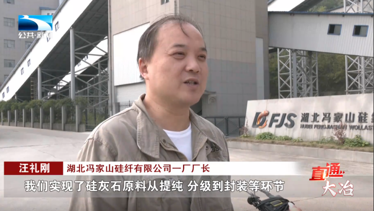 湖北冯家山硅纤有限公司一厂厂长 汪礼刚:“像我们以前只能出售原矿石,通过智能化升级 绿色化转型,我们实现了硅灰石原料从提纯、分级到封装等环节,全程自动化操作,不留一点废料。”