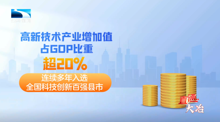 333家高新技术企业让大冶吃上“技术饭”,高新技术产业增加值占GDP比重超20%,连续多年入选全国科技创新百强县市。2024赛迪全国百强排名中,大冶上升至第55位,实现八年八进位。