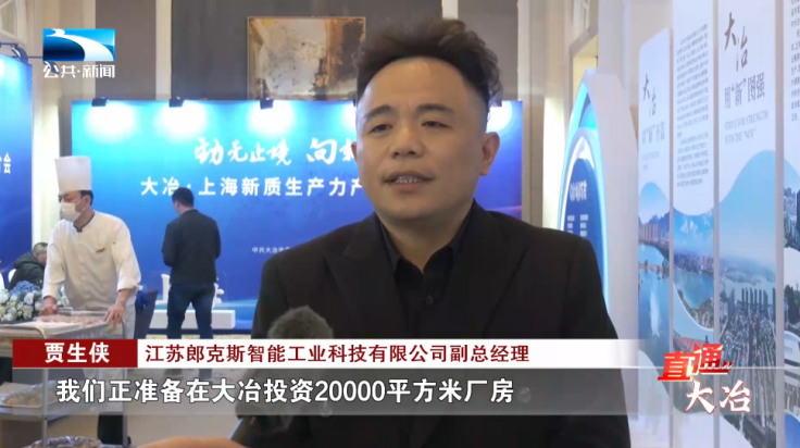江苏郎克斯智能工业科技有限公司副总经理 贾生侠:“我们正准备在大冶投资20000平方米厂房,税收近500万元,带动就业500人左右。”