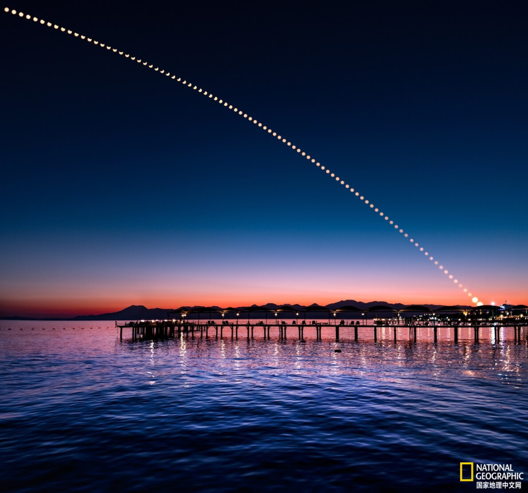 这张图像展现了2022年10月25日在土耳其安塔利亚拍摄的地中海上空日偏食全过程。|摄影合成:MIGUEL CLARO