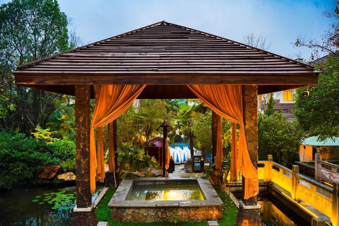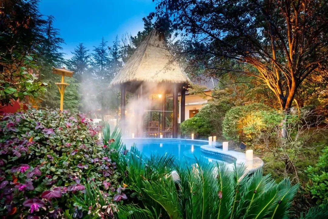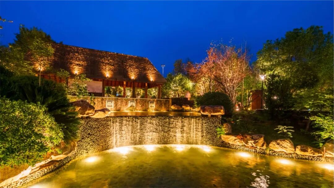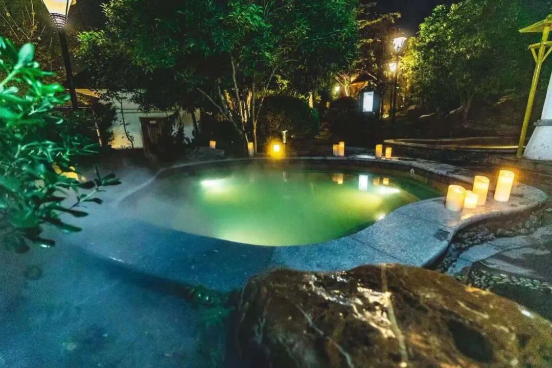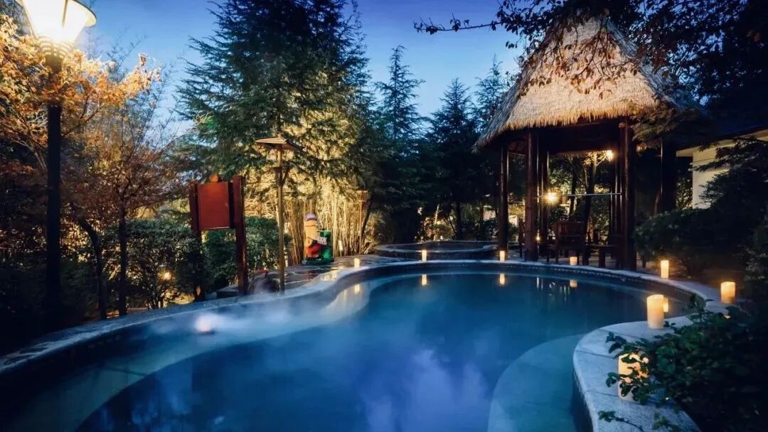 温泉水富含珍贵锶元素,50余处露天风情温泉汤池依据地势高低起伏而建,整体设计风格体现了东南亚巴厘岛风情,吸引了无数游客前来休闲度假。