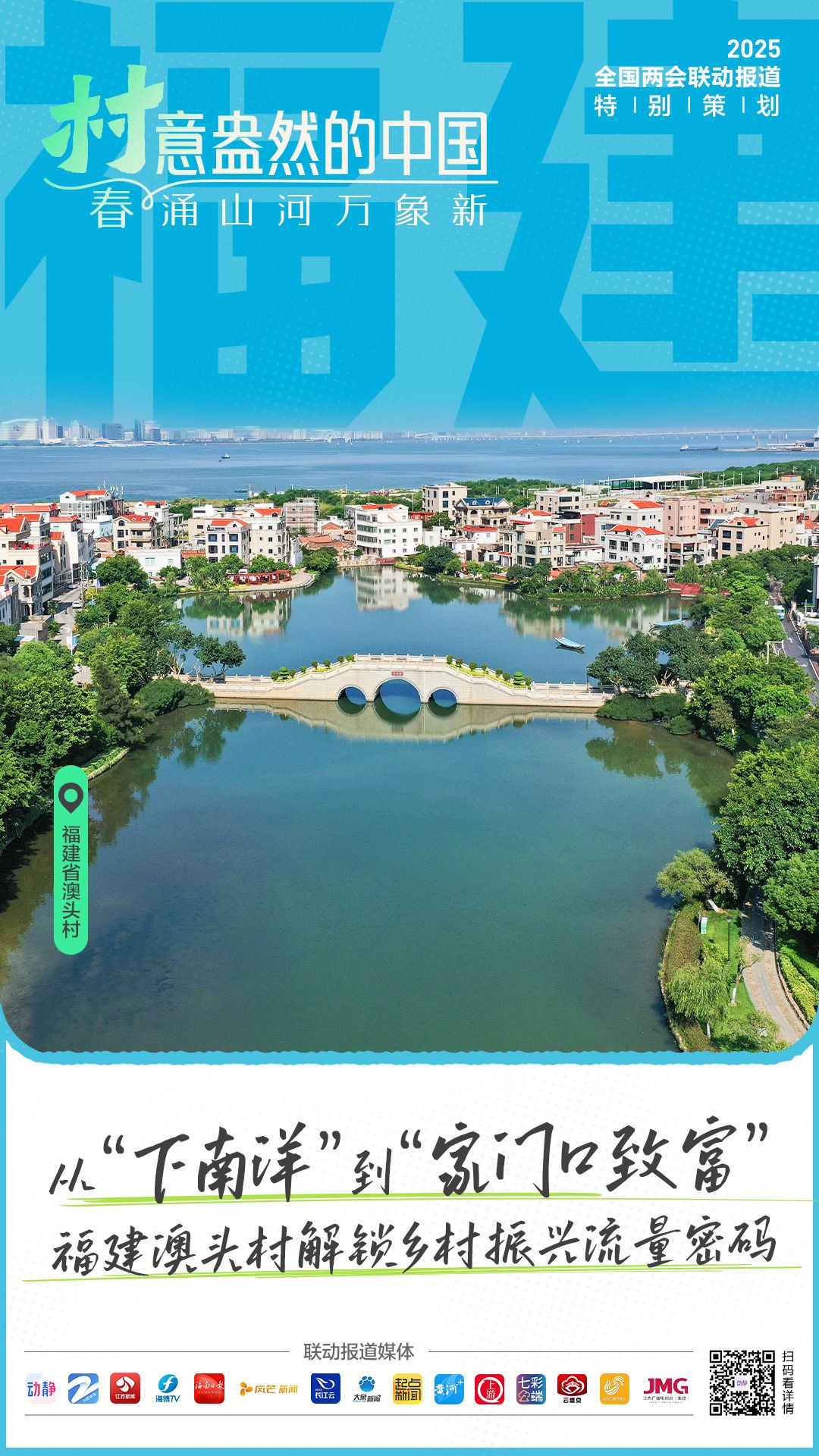早春的中国大地,春涌山河万象新,中国乡村处处“村”意盎然。2025年是“十四五”收官之年,也是巩固拓展脱贫攻坚成果同乡村振兴有效衔接5年过渡期的最后一年。为喜迎2025年全国两会召开,2月26日起,动静新闻联合浙江、江苏、福建、海南、湖南、湖北、河南、山西、陕西、重庆、云南、辽宁、山东、江西等全国15省市媒体,共同推出全国两会联动报道《“村”意盎然的中国》,用“村”故事记录这个生机勃勃的春天,展现各地乡村在产业振兴、生态宜居、乡风文明、治理有效和生活富裕等方面的显著变化和发展成就。今天,看来自福建澳头村的故事《从“下南洋”到“家门口致富” 福建澳头村解锁乡村振兴流量密码》。