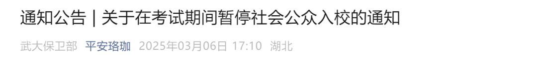 请广大社会公众关注学校保卫部“平安珞珈”微信公众号,及时掌握校园开放最新动态,提前安排好出行计划。