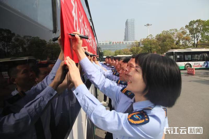 同样的实训热潮在建设十路场站同步展开。542路党员司机颜君正演示“右侧来客挥左手,左侧来客挥右手”的对应法则,555路黄斌则带领同事签署承诺书,将“一看、二慢(停)、三通过”刻入驾驶日常。武汉火车站枢纽站内,643路查靖、610路黄梅两位女队长带领队员庄严签字,笔尖落下的承诺将化作斑马线前的每一次驻足。
