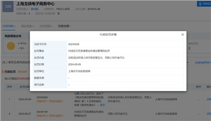 此外,记者还调查发现,二级票务平台旗下商家曾多次因未经许可出售门票而被地方文旅部门处罚。比如,摩天轮卖家“上海戈侠电子商务中心”的工商登记状态是“注销”,却还在正常卖票。此前该中心就因未经批准,擅自出售演出门票被当地文旅部门处罚。