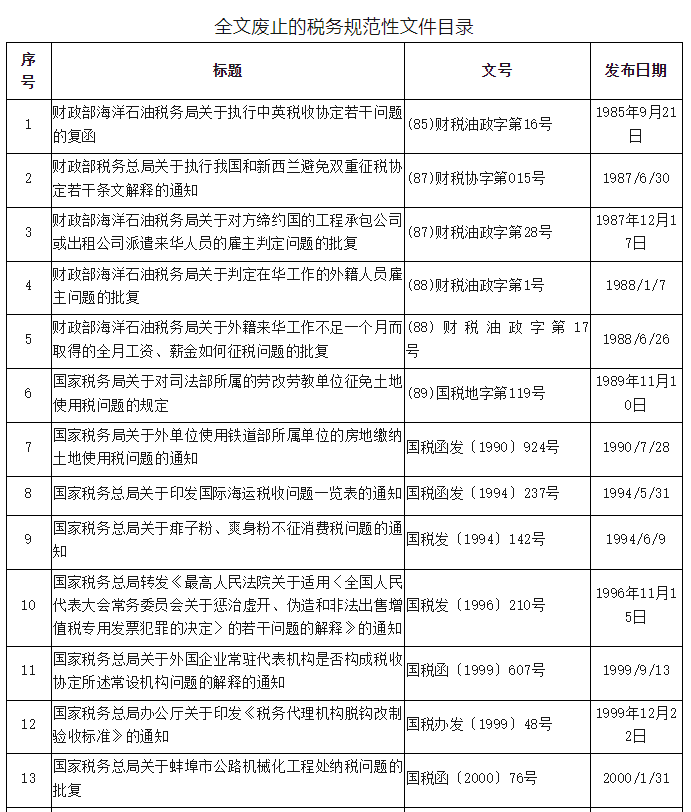 国家税务总局提醒:68件税务规范性文件已废止