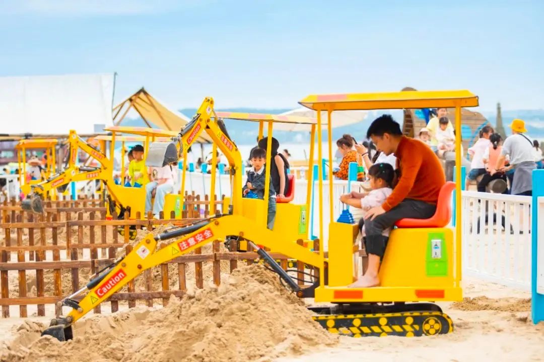 「轰隆隆——」小朋友手握操纵杆化身迷你工程师,用沙子精准填满竹筐,就可以兑换惊喜好礼!(悄悄说:隔壁家长抢着玩,根本不分年龄!)