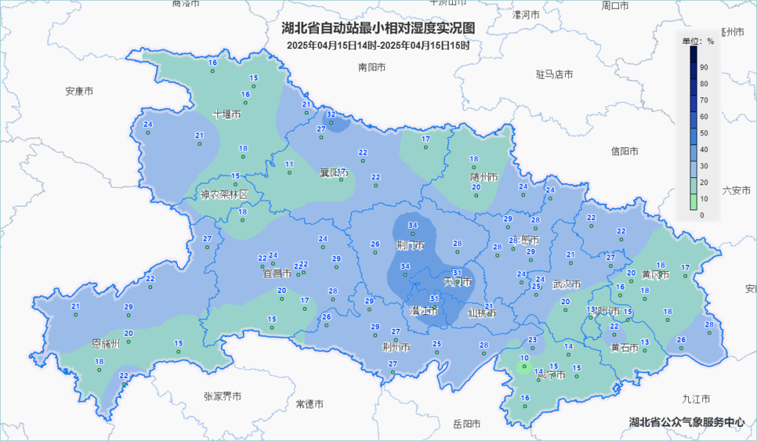 4月15日20时-16日08时,湖北全省晴天到多云。最低气温西部11~15℃、中东部15~19℃,偏南风3级、阵风4到5级。