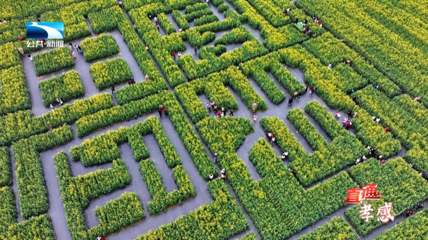 长江云新闻记者 赵黎黎:我们在上面差不多200米的视角去往下看的时候,整个花海跟村舍相呼应,真正感受到美丽乡村的感觉,能看到有我们的“一封家书”,这个视角来赏花,不仅是一片美景,更是一片文化的花海。