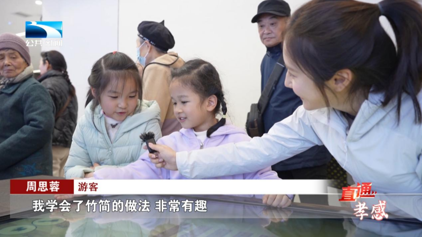 游客 周思蓉:这个是穿木头,我学会了竹简的做法,非常有趣。