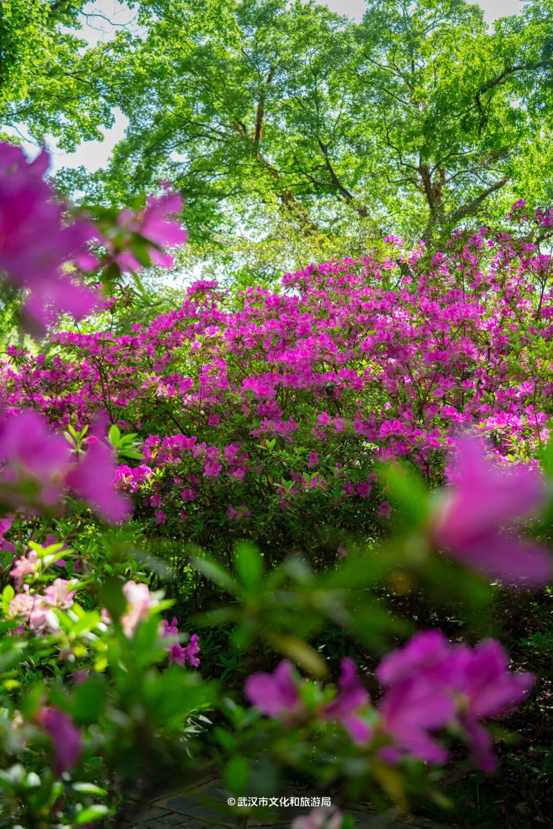 △磨山「杜鹃园」占地175亩,靠近「映霞桥」的杜鹃花开得最好。