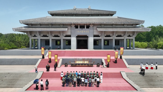 上午10时30分许,当浑厚的钟声响起,炎帝故里景区广场全体肃立华祖门前,排仗迎迓,行礼如仪,恭迎两岸外炎黄子孙谒祖寻根。在炎帝神农故里照壁处,嘉宾们整理衣冠,佩戴黄丝巾,经过四牛耕作石雕、九拱桥、华夏始祖门、圣火台、七步登天台,行至庄严肃穆的谒祖广场,面向炎帝神农大殿肃立。