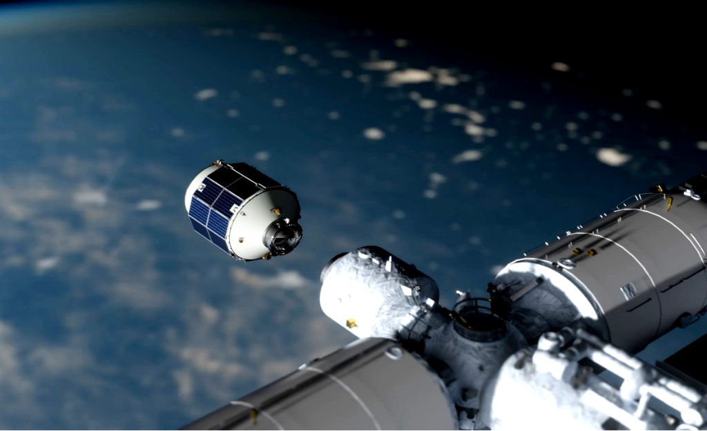 轻舟货运飞船与中国空间站对接示意图。中国科学院微小卫星创新研究院供图