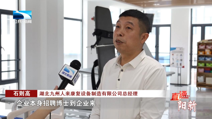 湖北九州人来康复设备制造有限公司总经理 石则高:企业本身招聘博士到企业来,还是要花费很大的成本,他们来帮助我们是免费的。
