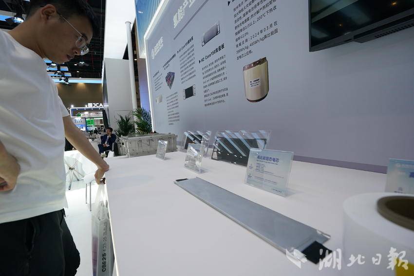 东风汽车展台,工作参观自主研发的高比能固态电芯。